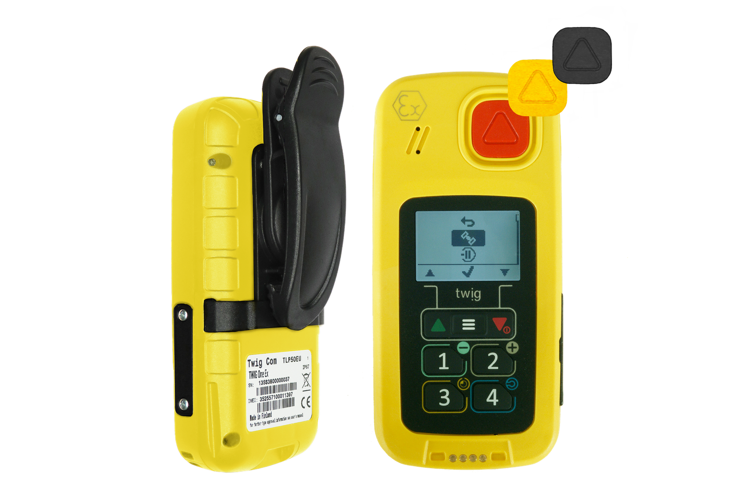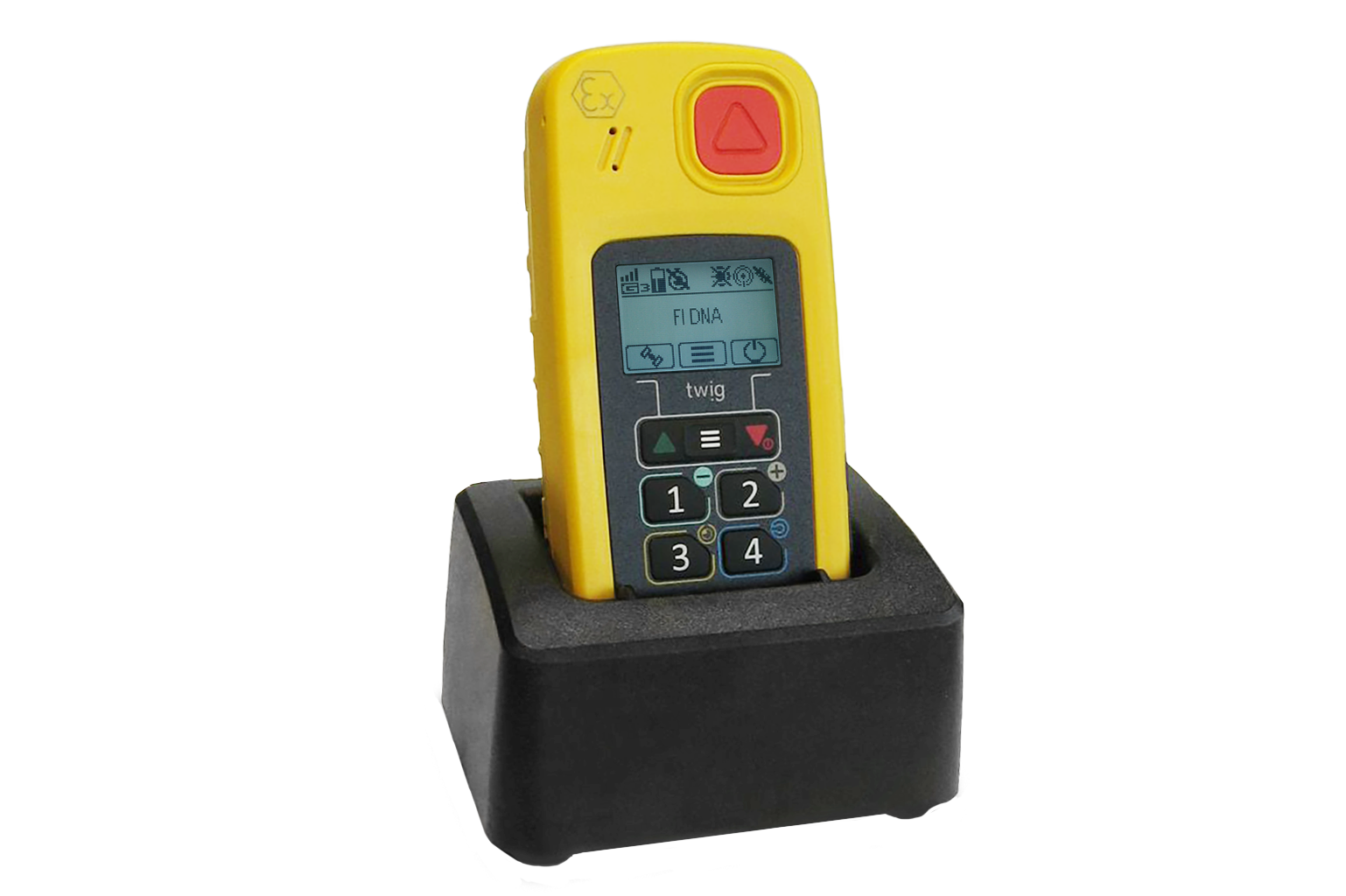 De Twig One Ex kan gebruikt worden om de veiligheid van alleenwerkers te waarborgen. Een alarmknop kan worden ingedrukt waardoor automatisch informatie over positie, richting en bewegingssnelheid kan worden doorgegeven naar een vooraf ingesteld nummer.