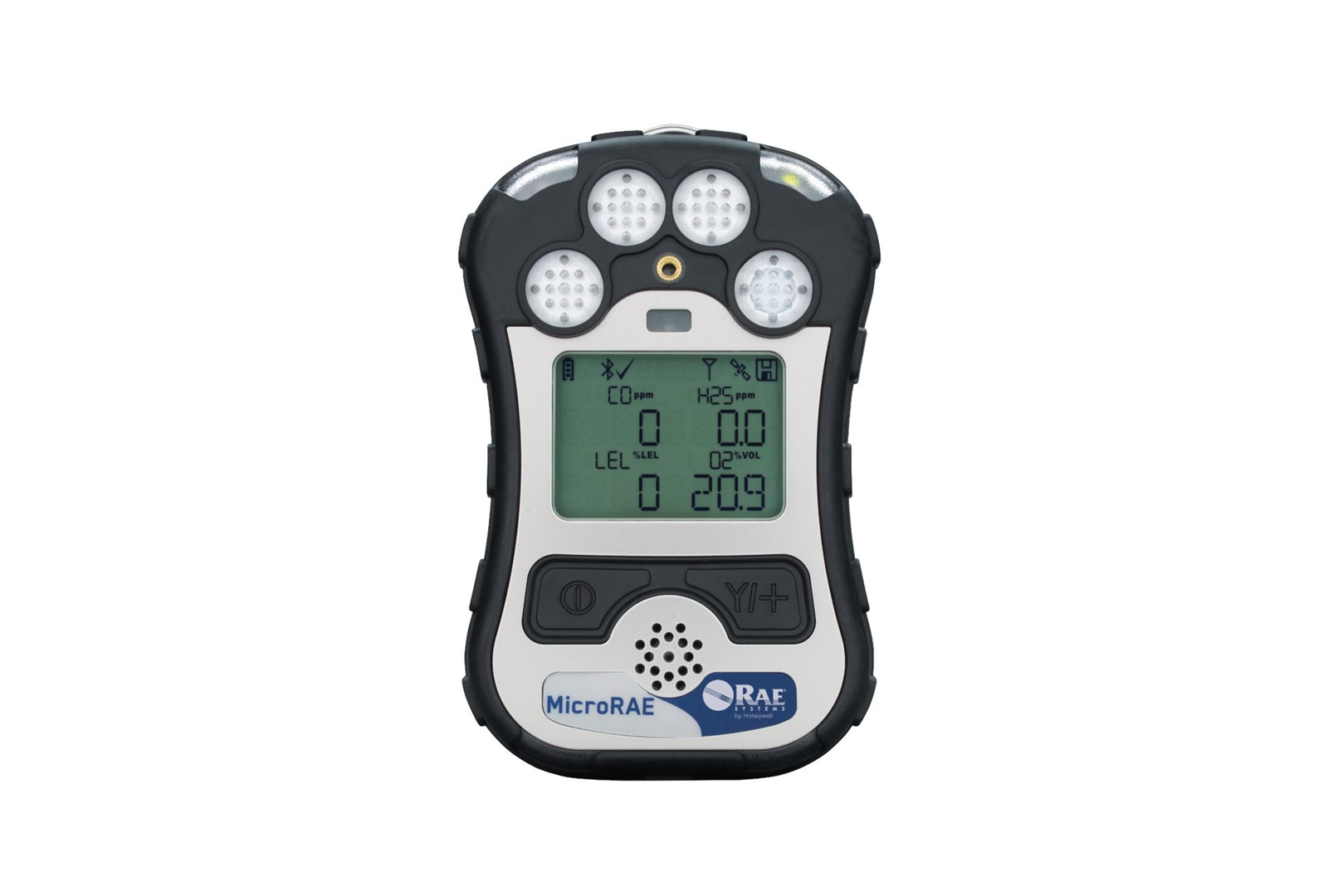 De MicroRAE van RAE Systems by Honeywell is een kleine, gebruiksvriendelijke, draadloze diffusie gasdetector die maximaal vier gassen tegelijk monitort, waaronder zuurstof (O2), brandbare gassen(LEL), koolmonoxide (CO) en waterstofsulfide (H2S). Er is ook een versie met een waterstofcyanide (HCN) -sensor beschikbaar. De MicroRAE is compact en licht genoeg om een hele werkdag aan uw werkkleding te dragen.