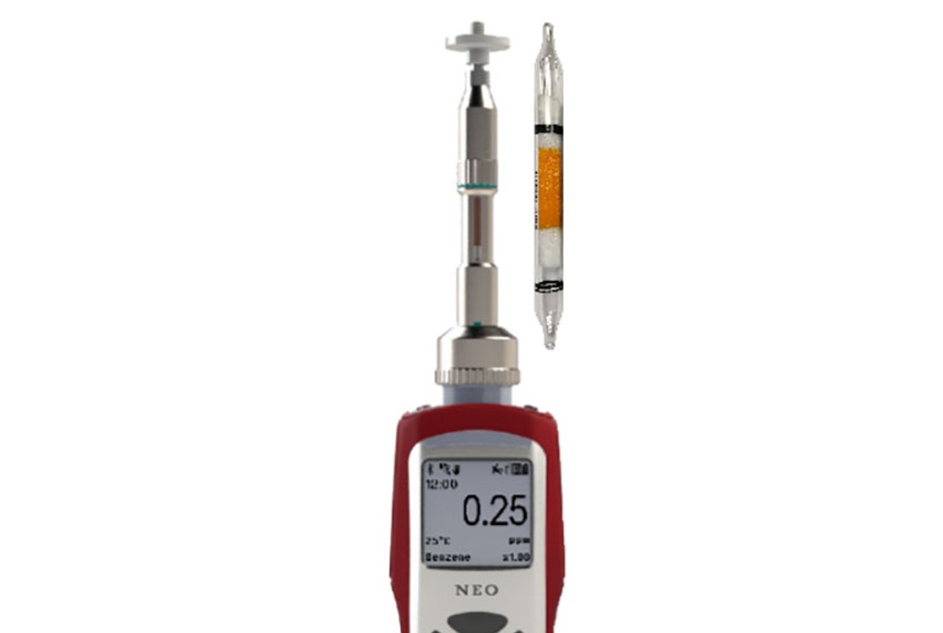 De WatchGas NEO BENZ is een draagbare hoogwaardige PID meter om benzeen (C6H6) te kunnen detecteren. Het apparaat beschikt standaard over een 9.8eV PID sensor die geschikt is voor de detectie van bijvoorbeeld benzeen, tolueen, ethylbenzeen, xyleen en meer. In tegenstelling tot de WatchGas NEO PPM, of WatchGas NEO PPB, beschikt de WatchGas NEO BENZ over een metalen buishouder tussen de probe en de sensor. Hier kunt u een benzeenseparatie buis tussen plaatsen om alle vluchtige organische stoffen weg te filteren, behalve benzeen. Zo kunt u zich tijdens een meting specifiek op benzeen richten en heeft u geen verstoring van andere gassen. Benzeen heeft een grenswaarde van 0,2 ppm, waardoor uw meetresultaten zonder separatiebuis al snel verstoord worden.