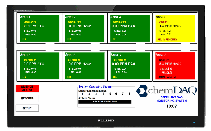 Optioneel is het ook mogelijk om de Steri-Tract uit te breiden met een Data-acquisitiesysteem van ChemDAQ. Dit is een computersoftwareoplossing voor gebiedsbewaking en archivering. Het data acquisitiesysteem kan gegevens van maximaal 32 meetlocaties tegelijkertijd synchroniseren en centraliseren, alle blootstellingsgegevens vergelijken met beroepsmatige blootstellingslimieten en historische rapportages voor elk meetpunt geautomatiseerd aanleveren.