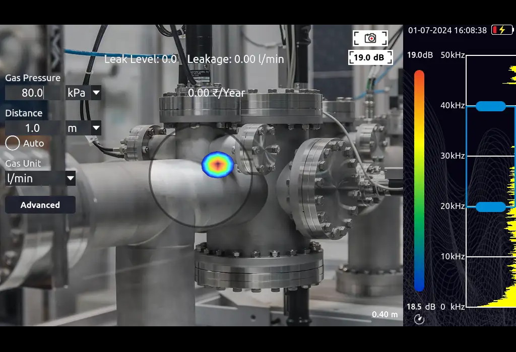 Productie- en procesindustrie: Detectie van lekkages in gasleidingen, compressoren en afsluiters.