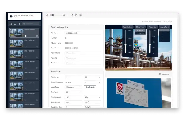 De camera combineert akoestische detectie met thermische beeldvorming. Hierdoor kunnen temperatuurafwijkingen – bijvoorbeeld bij stoomlekken of oververhitte componenten – direct worden gevisualiseerd naast het geluidssignaal, zonder extra apparatuur.