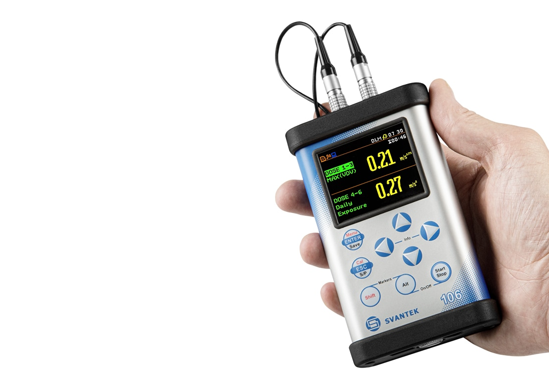 De SV 106D is een geavanceerd meetinstrument voor het meten van blootstelling aan hand-arm trillingen of lichaamstrillingen. Hand-arm trillingen treden op wanneer één of beide bovenste ledematen van een werknemer in contact zijn met trillende handgereedschappen, zoals handbediende elektrische gereedschappen, pneumatische boren, trillende machines, stuurwielen en hendels om voertuigen te bedienen. In de meting van hand-arm trillingen staat de vector som van tri-axiale trillingen centraal, aangeduid als ahv, die de basis vormt voor het berekenen van de dagelijkse blootstelling A(8). Door de tri-axiale accelerometer en de 'force detection' is het met de SV 106D mogelijk om automatisch de periode waarin de hand in contact is met het trillende oppervlak te meten, en om de totale contacttijd per dag te evalueren.
